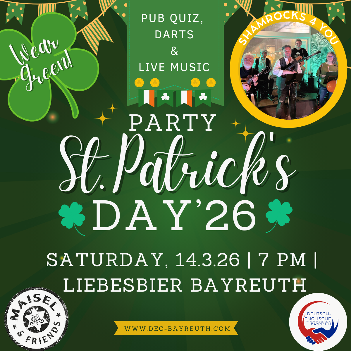 St. Patrick’s Day Party 2026: Bringing Dublin to Bayreuth The Deutsch-Englische Gesellschaft Bayreuth e.V. (DEG) is delighted to announce this