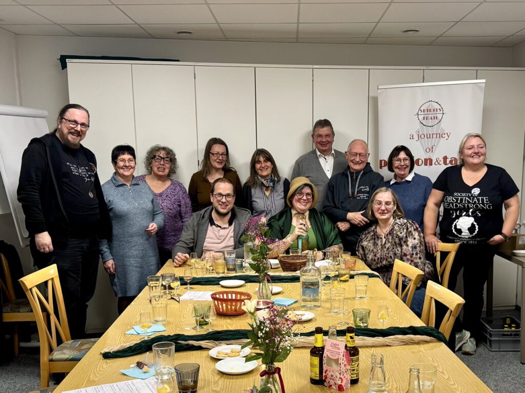 A “Dance Like Jane” session allowed guests to experience the elegance of Regency-style dance. It was conducted by Winfried Bloche leader of the dance group “Spettacolo Cortigiano” in Bayreuth. The Jane Austen Quiz, led by Sabine, tested the guests’ knowledge of the author’s life and works, followed by a fun tombola drawing with . The evening concluded with a Gin-Tasting experience, hosted by Sandra from Spirits Trail Creußen, where guests sampled a selection of gins while learning from Sandra’s expertise. The delicious cocktail provided a relaxed and enjoyable end to a fantastic day.