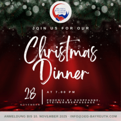 +++ Deutsch weiter unten +++ DEG Bayreuth e.V. Christmas Dinner Ring in the Christmas season with DEG[…]