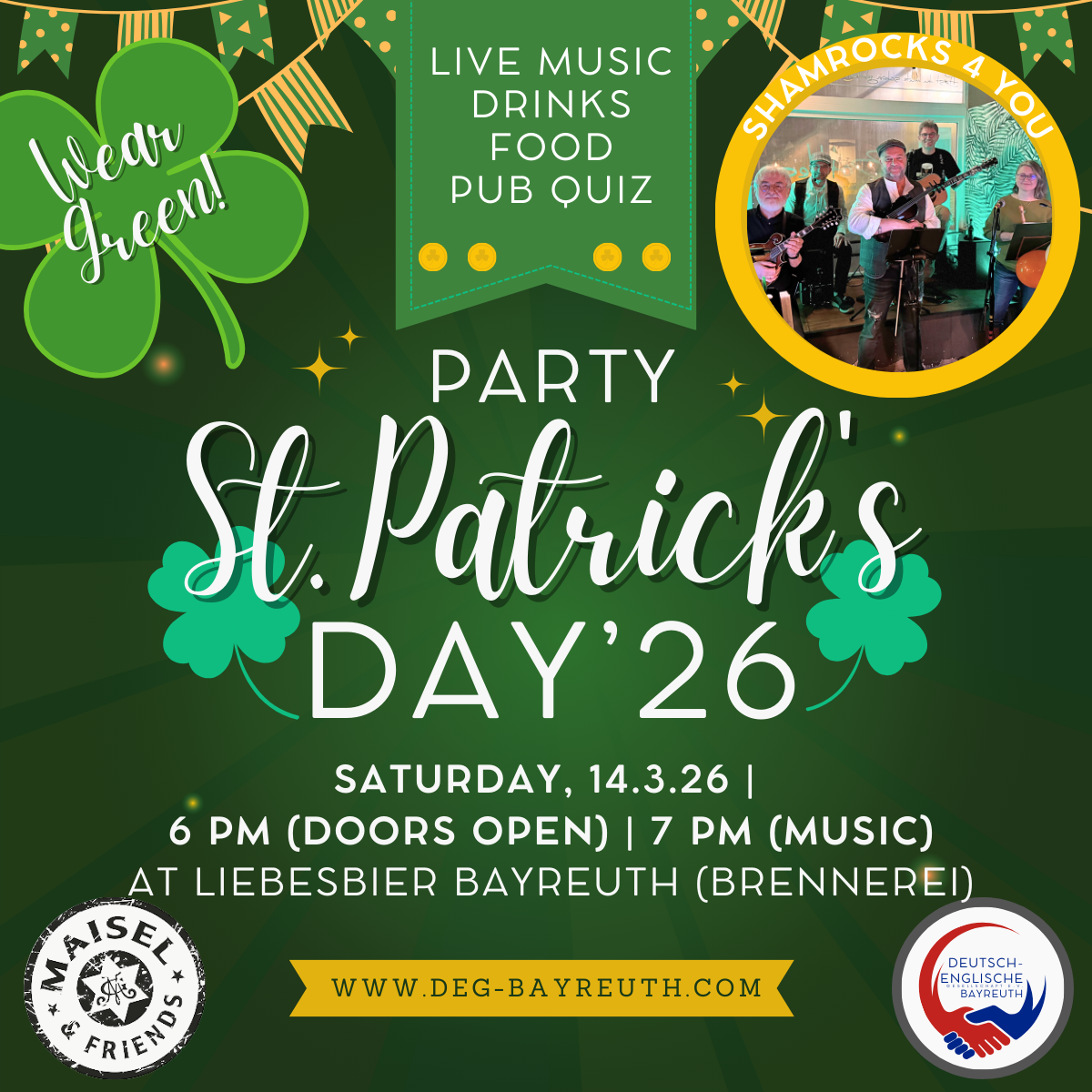 +++ Deutscher Text, siehe unten +++ St. Patrick’s Day Party 2026: Bringing Dublin to Bayreuth The Deutsch-Englische Gesellschaft Bayreuth e.V.